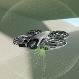 Incorpora un sistema de evitación de obstáculos omnidireccional basado en sensores LiDAR e infrarrojos, ofreciendo una experiencia de vuelo estable y segura incluso en espacios reducidos. Su cámara graba en resolución 4K hasta 60 fps (con modo de alta velocidad de 100 fps), capturando imágenes nítidas y fluidas con un rango dinámico mejorado.
